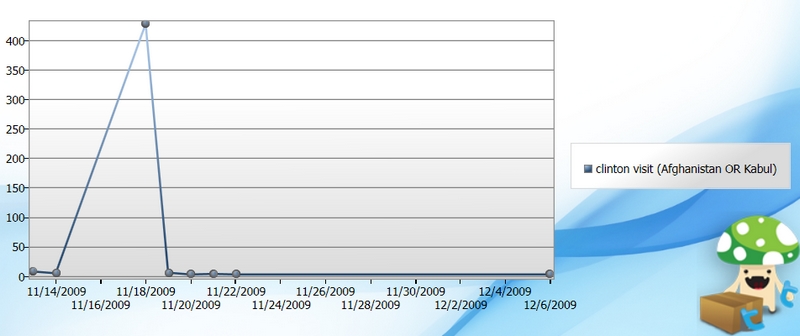 I tried both "clinton visit afghanistan" and "clinton visit (afghanistan OR kabul)" Adding OR Kabul added about 100 messages to the stream -- 3235 up to 414. Almost all of the stream was about this visit with only a few at from before the 18th.