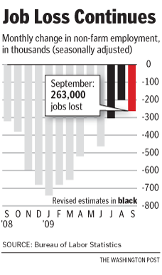 The recession's toll on workers rose again in September, with the unemployment rate climbing to 9.8 percent, its highest level since 1983, as the count of the nation's jobless topped 15.1 million, according to a government report released Friday.